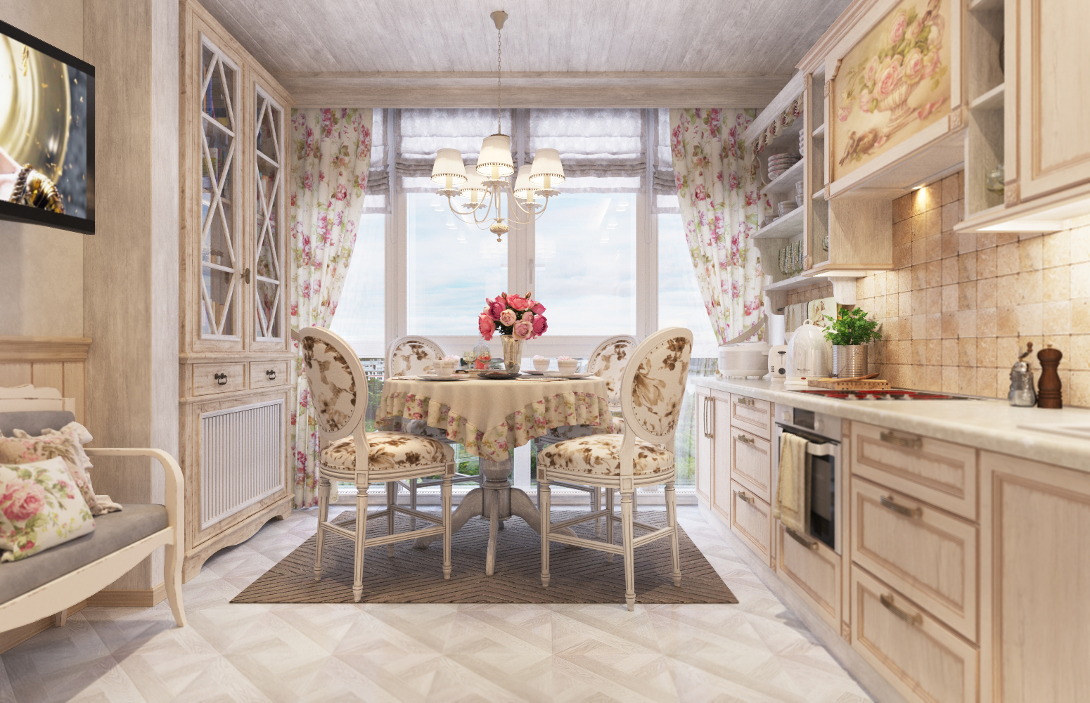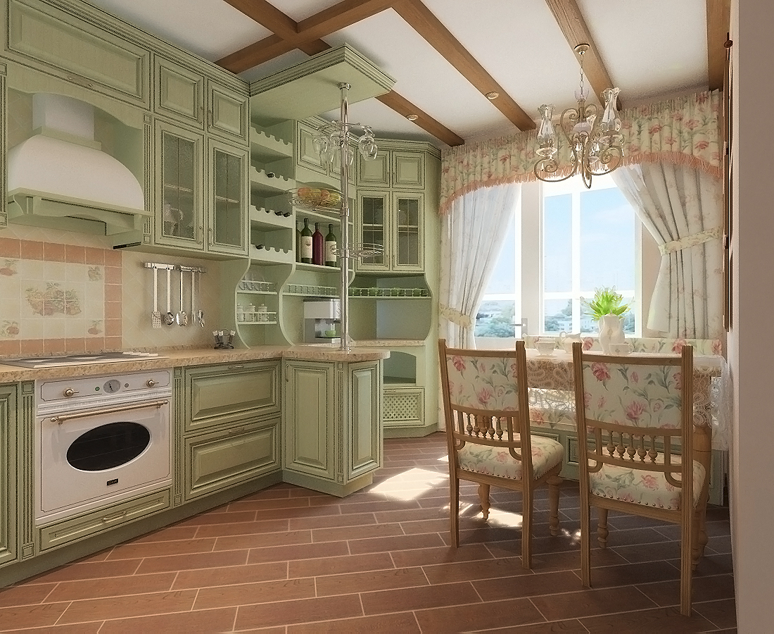 стиле прованс, как правило, оформлены в светлых цветах. Мебель в кухне может быть и бе-