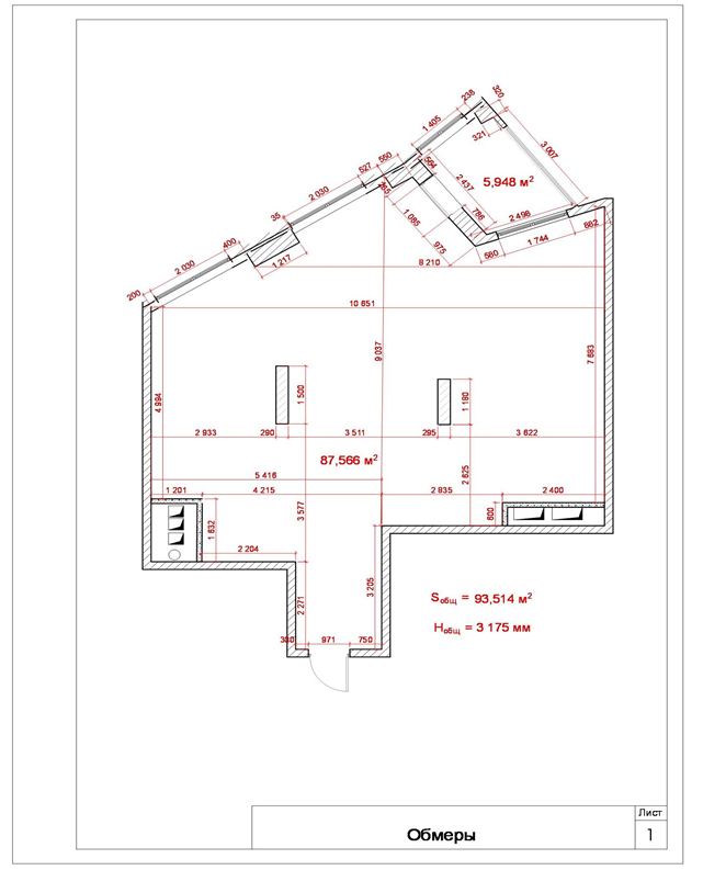колонами. Общая площадь 93,5 м2