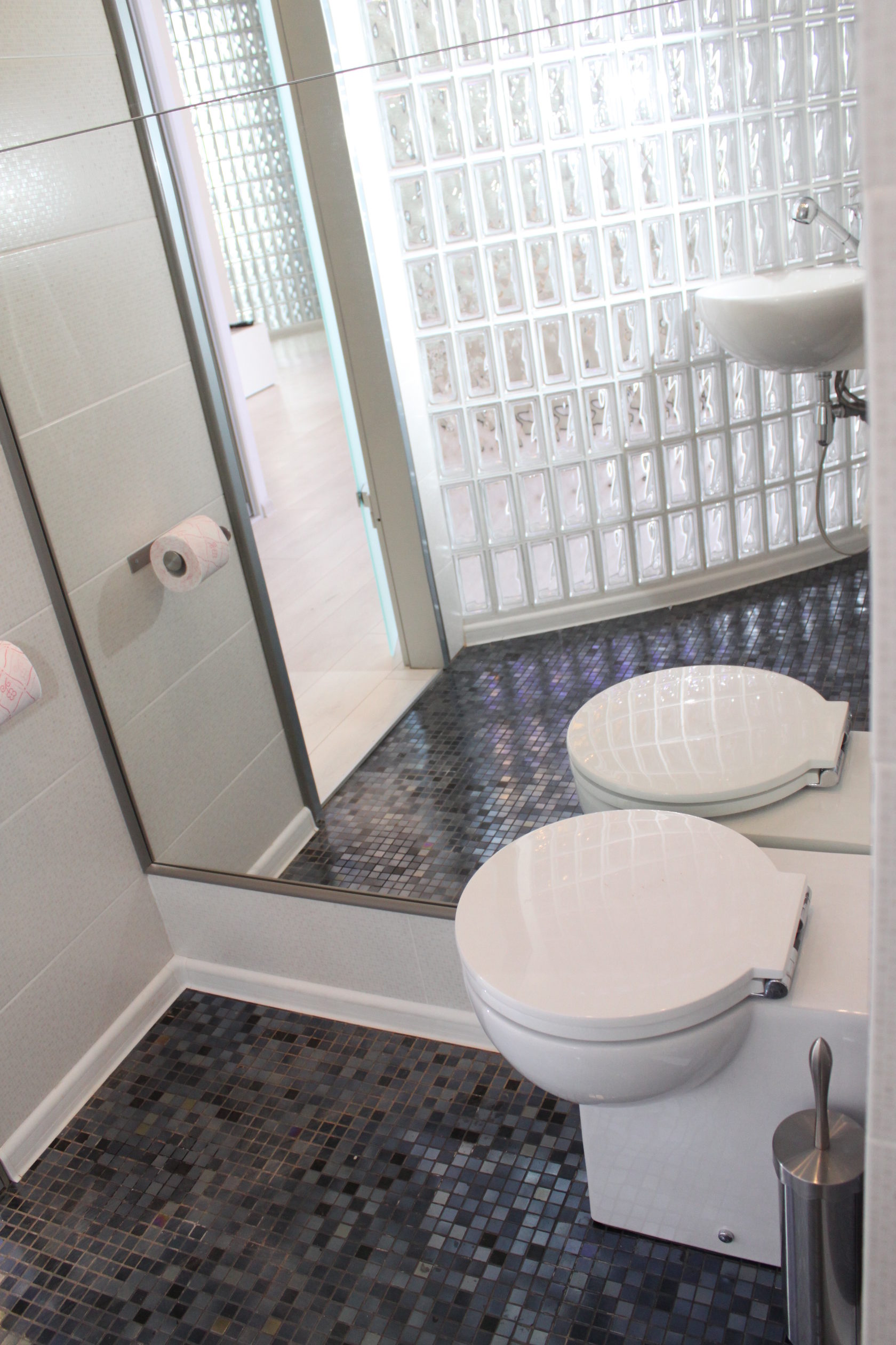 Очень нравятся стены из стеклоблоков.