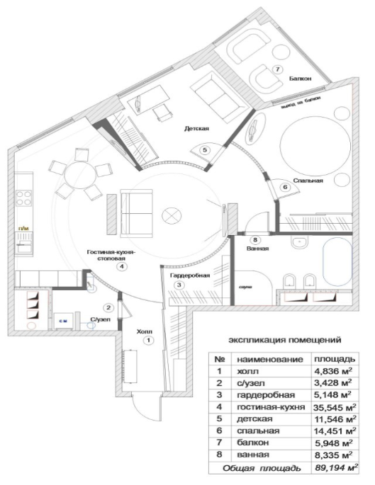 Квартира необычной формы, с двумя несущими