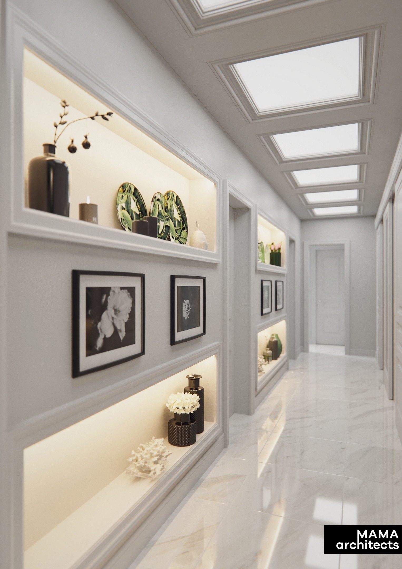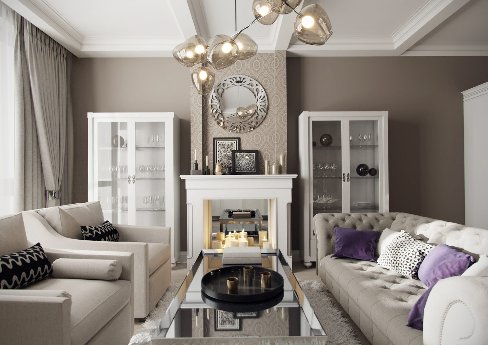 зеркала отражают нео-классику в интерьере с тонким